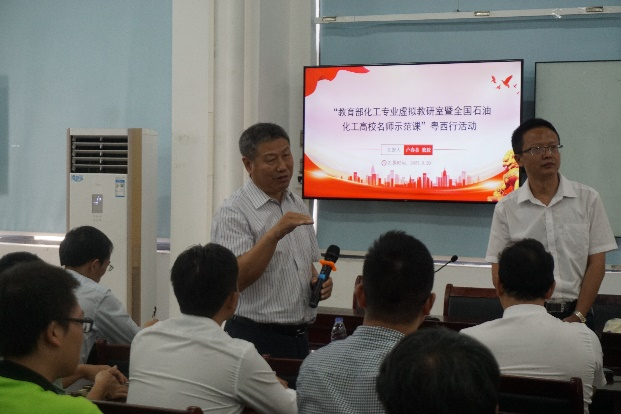 在互动交流环节,卢春喜教授与学院教师就催化油浆脱固等进行了热烈的交流和讨论,并建议我校国家一流课程《石油炼制工程》《石油化工工艺学》应依托石化产业融入更多工程案例,进一步加强产教融合。交流现场气氛活跃,大家受益匪浅。