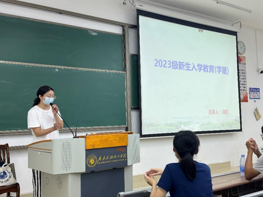 为了让2023级新生更快地适应大学生活,熟悉了解学校的学籍制度,9月23日晚,化学工程学院在西城校区J02教室举行了2023级新生入学教育大会。化工学院办公室教务员游虹担任主讲老师。化工学院全体23级新生参加会议。