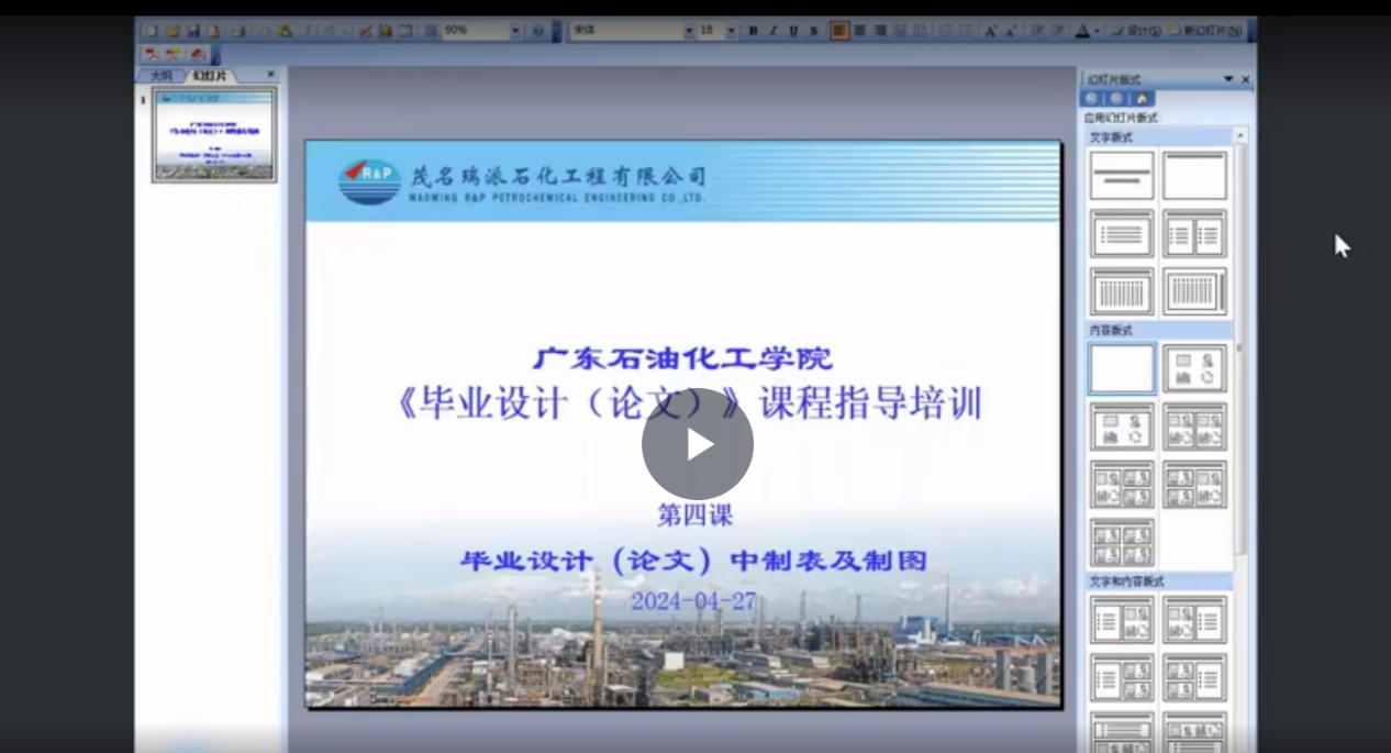 2024年4月27日晚上7点半-9点半,化学工程学院和广油-瑞派创新设计产业学院邀请茂名瑞派石化工程有限公司赵银瑞高级工程师为师生开展第四期毕业设计线上指导培训会,逾百名师生参加培训。