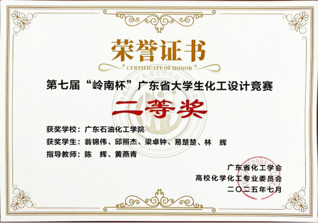 近日,第七届“岭南杯”广东省大学生化工设计竞赛圆满落幕,经过设计文档质量、现代设计方法应用、工程图纸质量的网评初审,PPT汇报展示、答辩成绩的激烈角逐,由陈辉教授、黄燕青老师指导的五个团队获特等奖1项、二等奖4项。