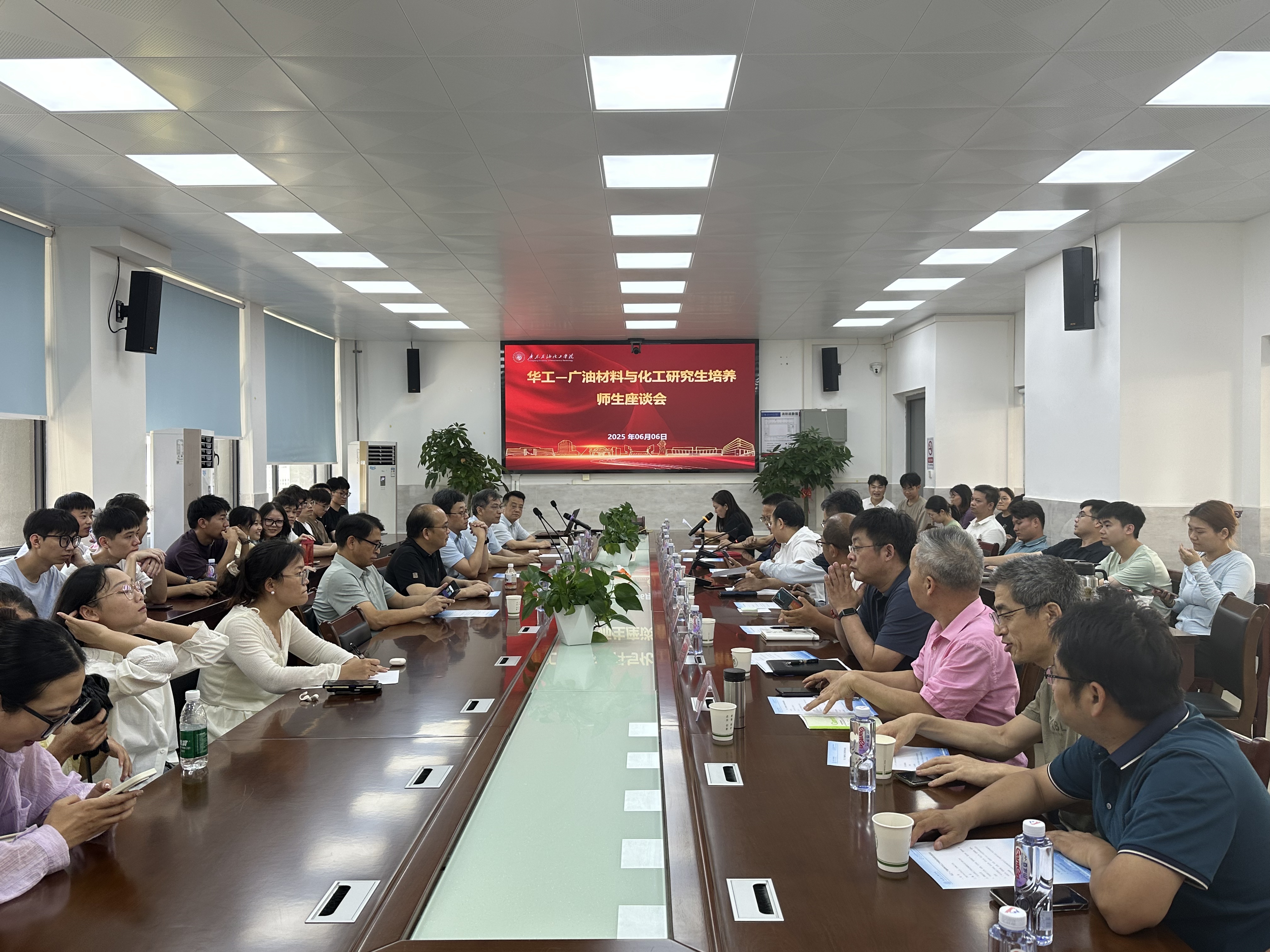 2025年6月6日下午,华南理工大学(以下简称“华工”)与beat365官方网站(以下简称“广油”)共同召开了“材料与化工专业硕士研究生联合培养师生交流会”,来自两校的导师代表、联合培养研究生以及广油材料与化工专业的全体研究生参加了此次交流活动。
