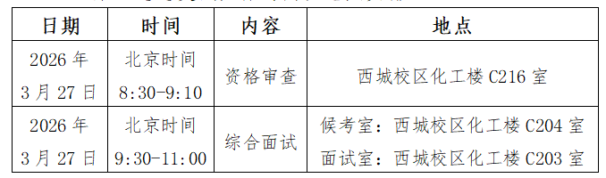 3.调剂复试时间:2026年4月8日-4月28日,具体各批次复试时间另行通知。