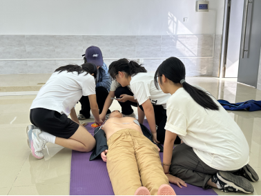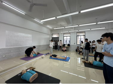 在实操环节,同学们分组进行模拟练习,在老师和退伍同学的指导下,亲自体验心肺复苏全过程。大家认真操作、积极提问,通过反复练习逐步掌握了基本动作要领与节奏,现场学习氛围浓厚。