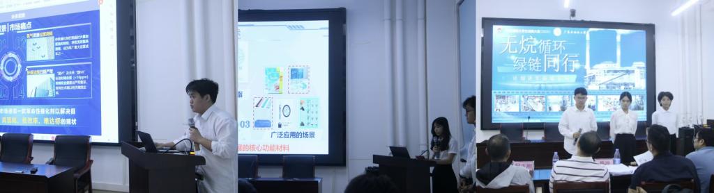 本次竞赛涵盖新材料、新能源、双碳技术、环境治理、生物健康及乡村振兴等多个前沿领域。各团队通过路演展示与现场答辩,呈现了创新思维与实践能力的精彩碰撞。经评审,三个项目脱颖而出晋级校赛,分别为《绿色合醇——丙烯醛氧化-水合-加氢全流程技术产业化研究》《新炬优催——科技赋能丙烯醛制备助力化工高效升级》及《烯盾全域·石墨烯防爆头盔耳机——开启安全聆听新生态》。