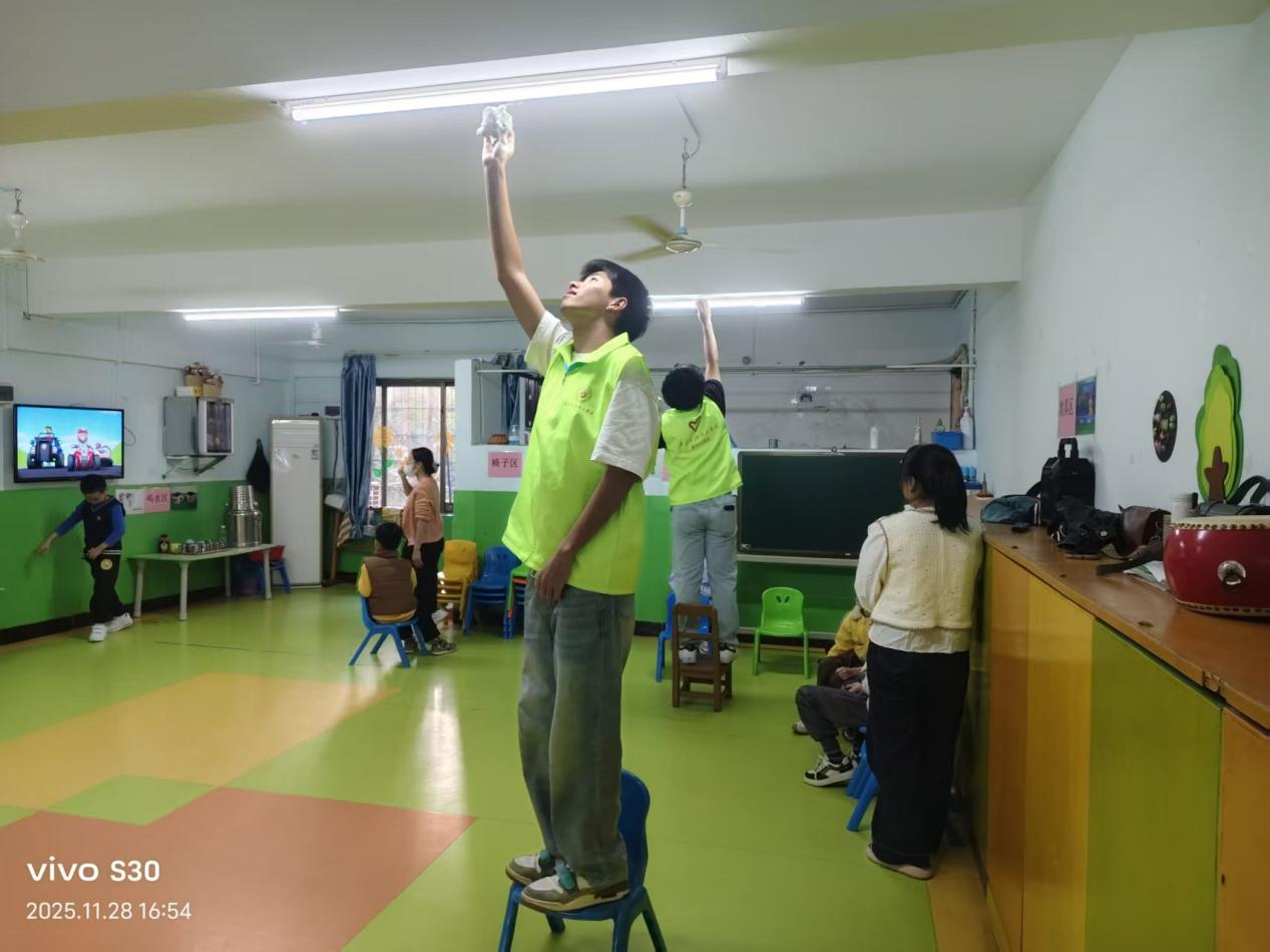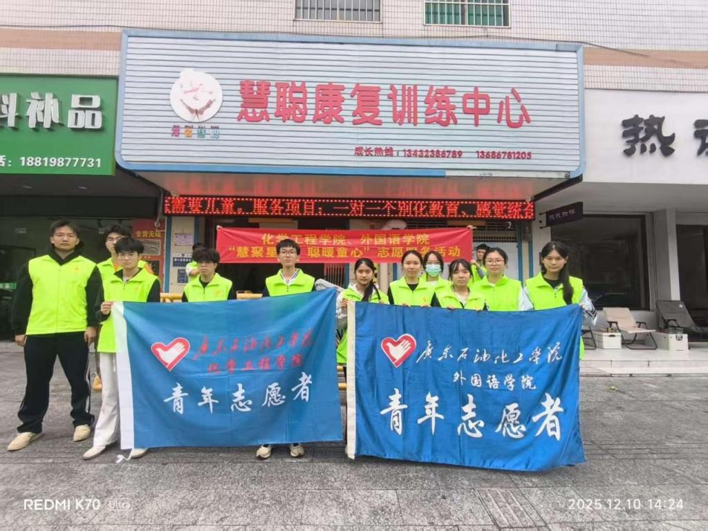 每颗星星都有其独特的轨迹,每一个孩子也拥有与世界对话的独特方式。为传递“尊重、包容、平等”的融合教育理念,以实际行动关爱自闭症儿童,2025年11月17日至12月12日,beat365官方网站组织开展了“慧聚星光,聪暖童心”志愿服务活动。来自化学工程学院与外国语学院的135名志愿者分批走进茂名市慧聪康复训练中心,通过持续的陪伴与细致的协助,为孩子们带去了温暖与支持,也为康复教育注入了青春活力。