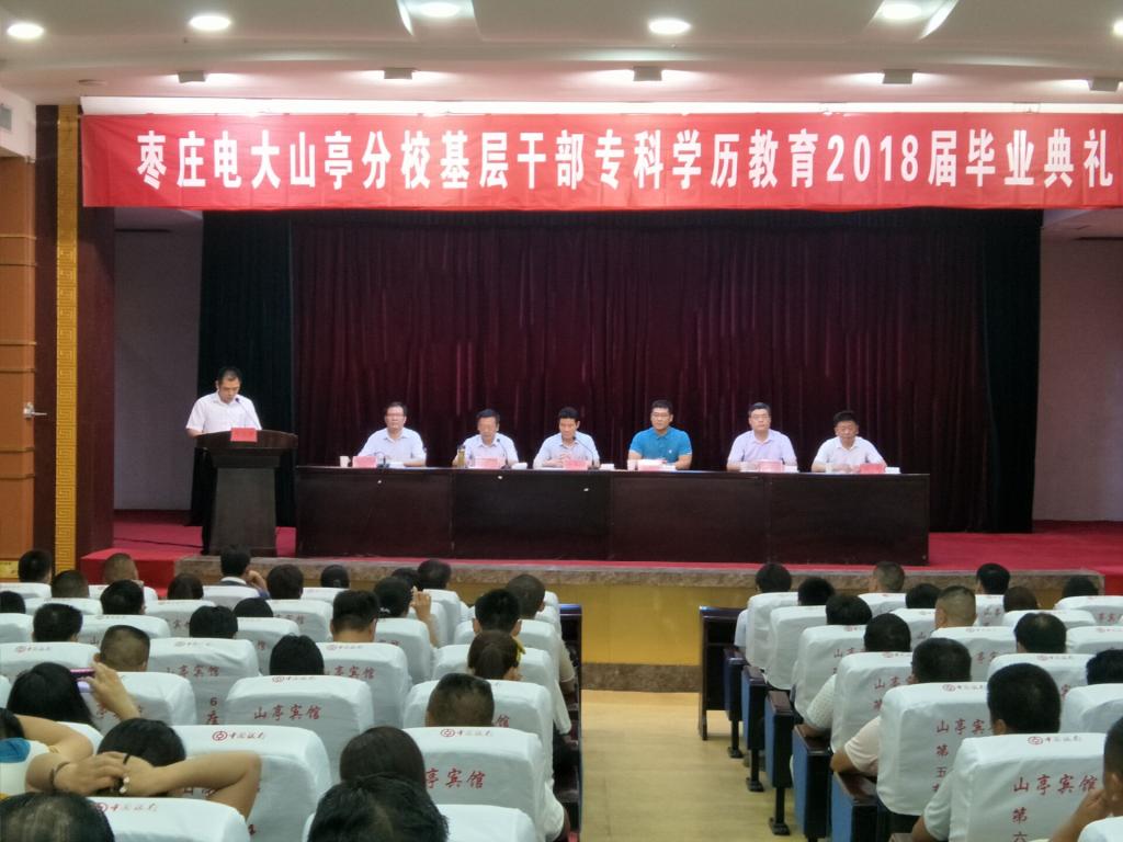 7月12日上午,枣庄电大山亭分校基层干部专科学历教育2018届毕业典礼在山亭宾馆隆重举行。枣庄市委组织部远教中心主任苑永利、Ky开元集团Ky开元集团副院长王奉涛、区委组织部区委党校有关领导出席,区委党校全体教职工及109名学员共同参加了本次典礼。典礼由区委党校党委书记、常务副校长满孝东主持。